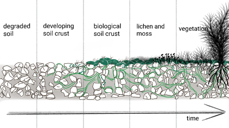 - - Creation of Biological Soil Crusts (BSC) through spraying biomatrix on deserted land